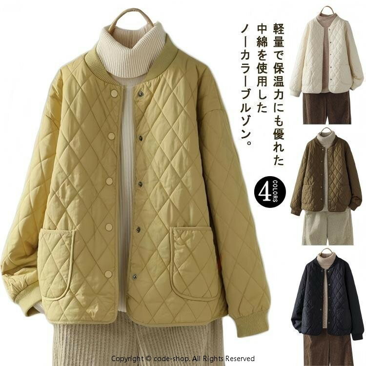 ジャケット レディース アウター 中綿ジャケット キルティングコート ノーカラーコート ダウン風コート 長袖 中綿コート ショート 上着