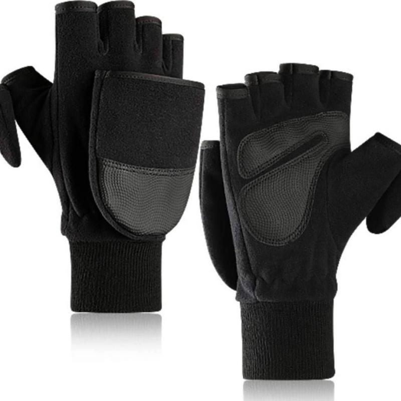 手袋 男性用 秋冬 防寒 保温 半指 指なし フリップ カバー 付き スポーツ サイクル サイクリング グローブ 滑り止め タッチパネル 操作 ボア フリース