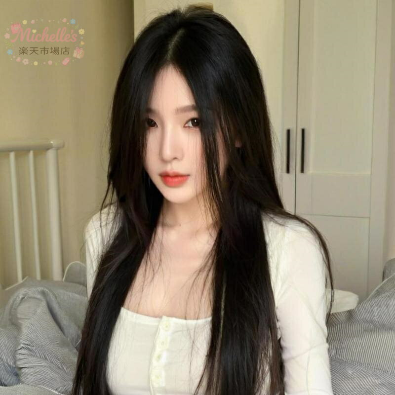 ウィッグ レディース JK ロリータ スタイル 甘め ロングストレート 前髪ぱっつん 85cm もみあげ付き ナチュラルブラック フルウィッグ 耐熱ファイバー 人工毛