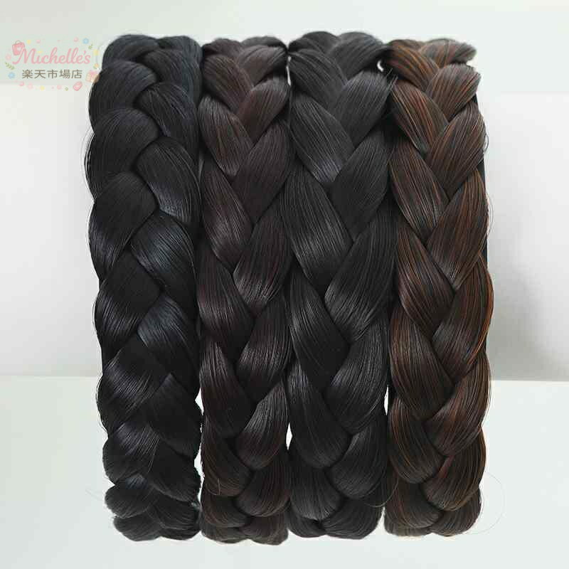 ヘアバンド レディース 編み込み ウィッグ風 高頭頂 ボリュームアップ 歯付き 防滑 春夏 ミックス素材 自然黒 ダークブラウン ライトブラウン 韓風 かわいい 普段使い
