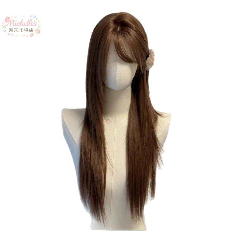 ウィッグ レディース 女性用 ロングストレート フルウィッグ 全頭 耐熱ファイバー ナチュラル 普段使い すっぴん隠し キャラメルブラウン 暖色 甘め カジュアル ガーリー 雑誌掲載風