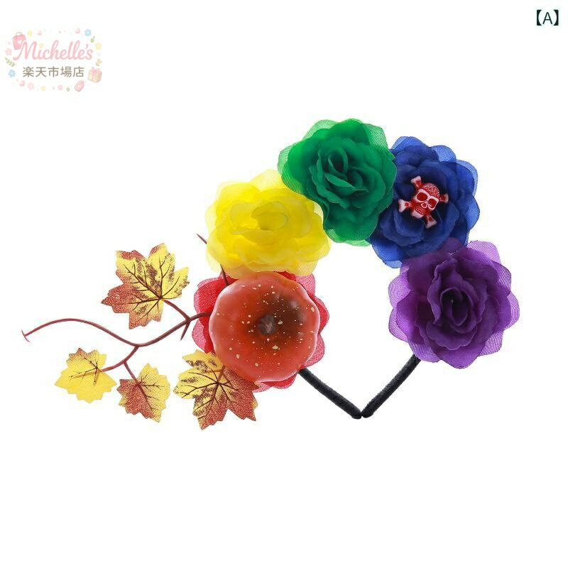 ヘアアクセサリー レディース フラワー ヘッドバンド 花冠 ヘアピース 造花 バラ 蘭花 レトロ かわいい 赤 紫 ピンク系 春 パーティー ウェディング ハロウィン メキシコ風