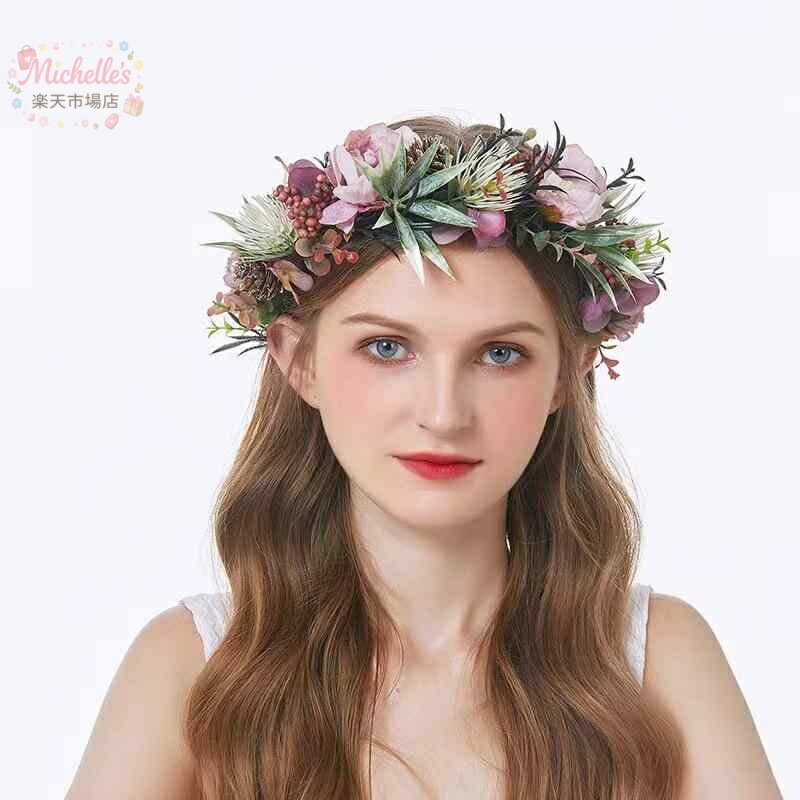 ヘアアクセサリー ヘアバンド ヘッドバンド レディース 花柄 造花 ナチュラル 森系 かわいい 布製 調整可能 花冠 夏 結婚式 旅行記念 フォトシュート