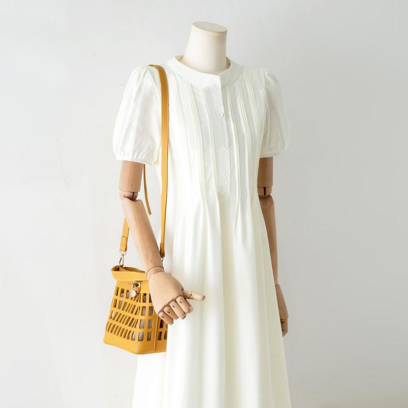 レディース プリーツ 優しい パフスリーブドレス 夏 カジュアル 半袖 ミドル丈 スカート