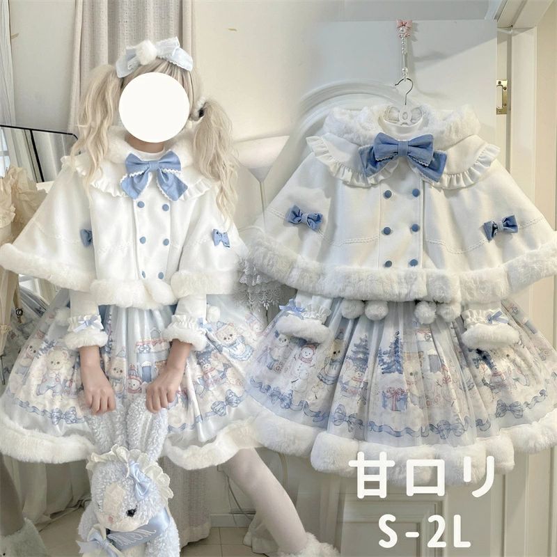 ロリータフード スカート 長袖シャツ ケープコート 秋冬服 膝丈 リボン レディース ロリータコート ロリータアウター トップス アウター 小柄 学生 通学 通勤 着?せ 女の子 長袖 袖あり 秋 冬 衣装 ゴスロリ 厚手 防寒 暖かい S M L LL