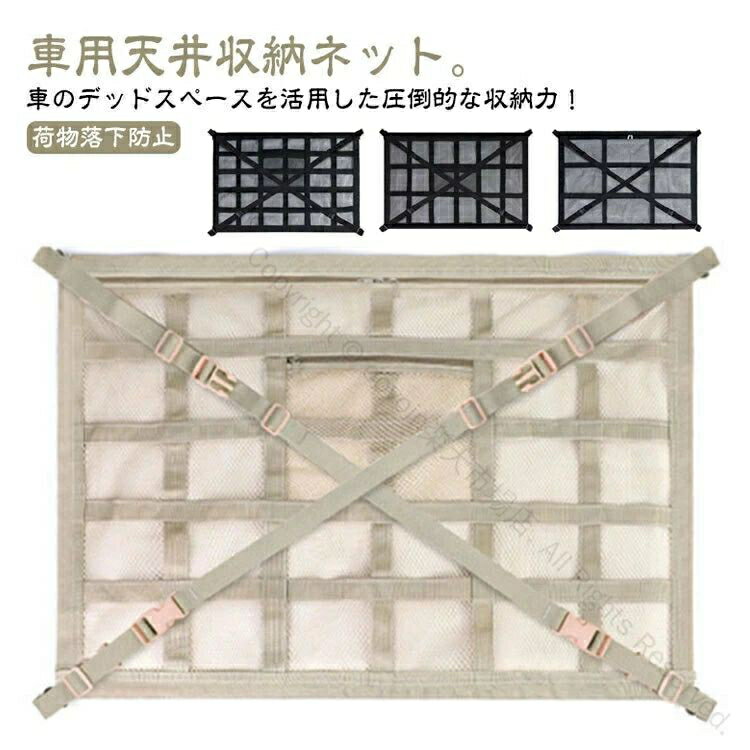 車用天井収納ネット ジッパー付き ファスナー付き カーゴネット ラゲッジネット ルーフネット マルチネット 車中泊対応 車載用荷物収納ネット カー用品
