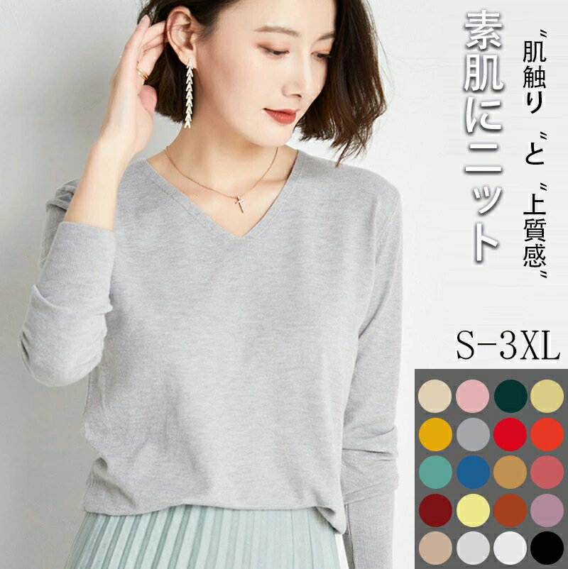 トップス ニット Vネックニット レディースセーター レディース ニット レディース 長袖 S/M/L/XL/2XL /3XL トップス 春 秋 コットンニット セーター 洗える きれいめ ゆったり シンプル 軽量 肌触り柔らかい 20代 30代 40代