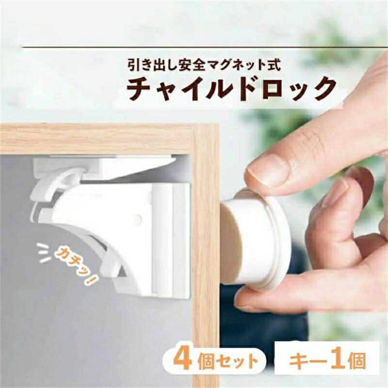 チャイルドロック マグネット式 4個セット 簡単開閉 隠せる 強力テープ 耐久性 キー ベビーロック 引き出し ドア 扉 安全 安心 ストッパー ケガ防止 いたずら防止 ベビーガード 工具不要 磁石 ロック 解除 マグネット 引き戸 ペット コスパ