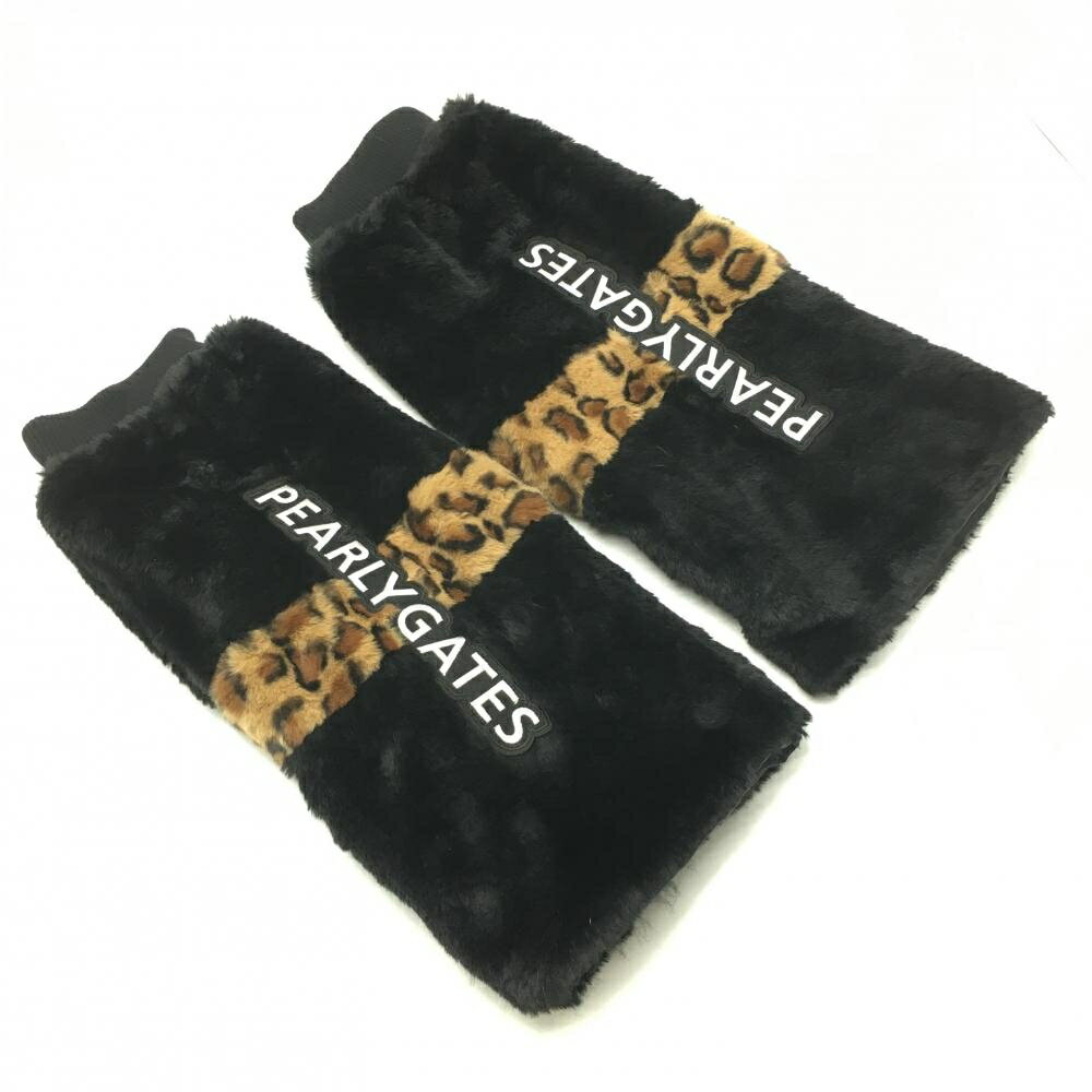 【超美品】パーリーゲイツ レッグウォーマー 黒×ブラウン 一部レオパード ヒョウ柄 レディース FR ゴルフウェア PEARLY GATES