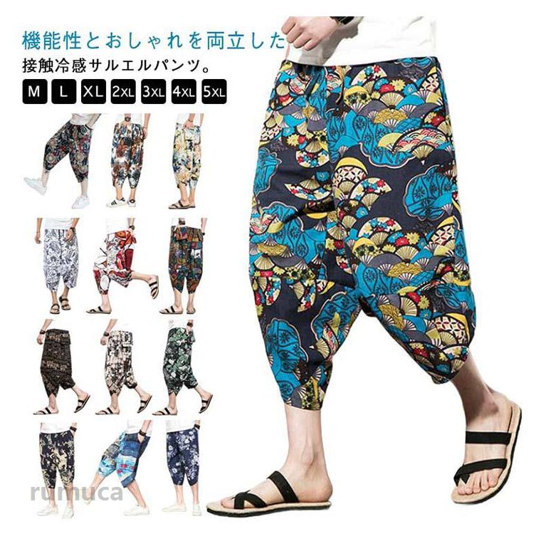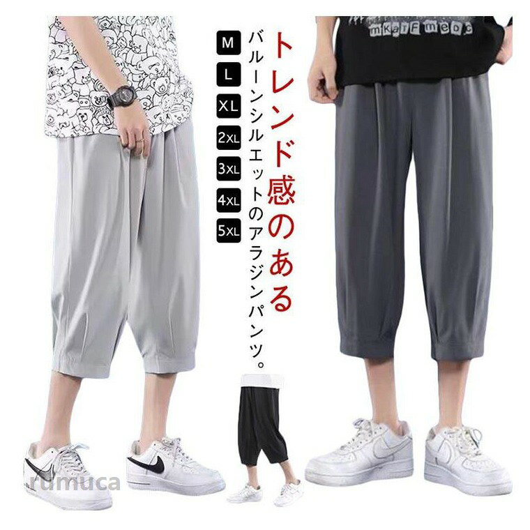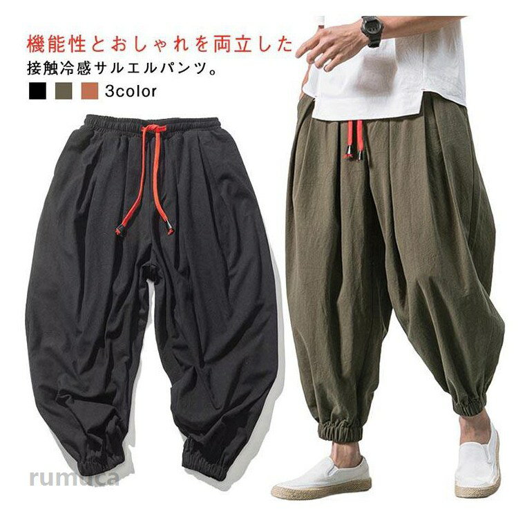 春夏 クロップドパンツ クロップドパンツ メンズ サルエルパンツ 接触冷感 7分丈 涼しい タック入り ワイドパンツ 冷感パンツ ゆったり ひんやり 春服 夏服 ウエストゴム M L XL 2XL 3XL 大きいサイズ カジュアルパンツ ルームウェア メンズファッション