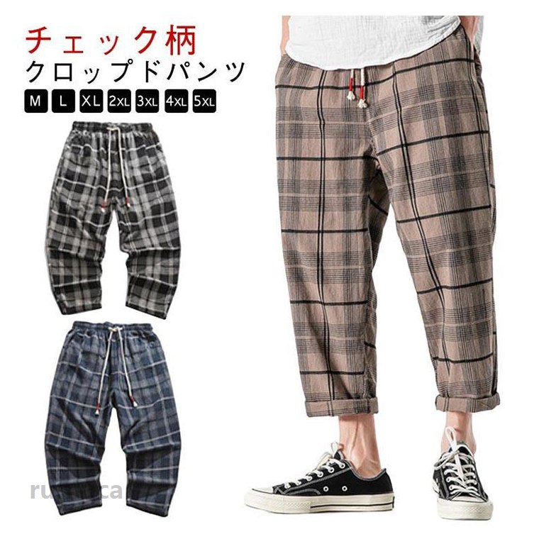 テーパードパンツ 春夏 チェック柄 ハーフパンツ ワイドパンツ XL ゆったり メンズ 春服 夏服 クロップドパンツ ウエストゴム イージーパンツ チェックパンツ M L メンズファッション 2XL 3XL 大きいサイズ カジュアルパンツ ルームウェア クロップドパンツ 父の日ギフト