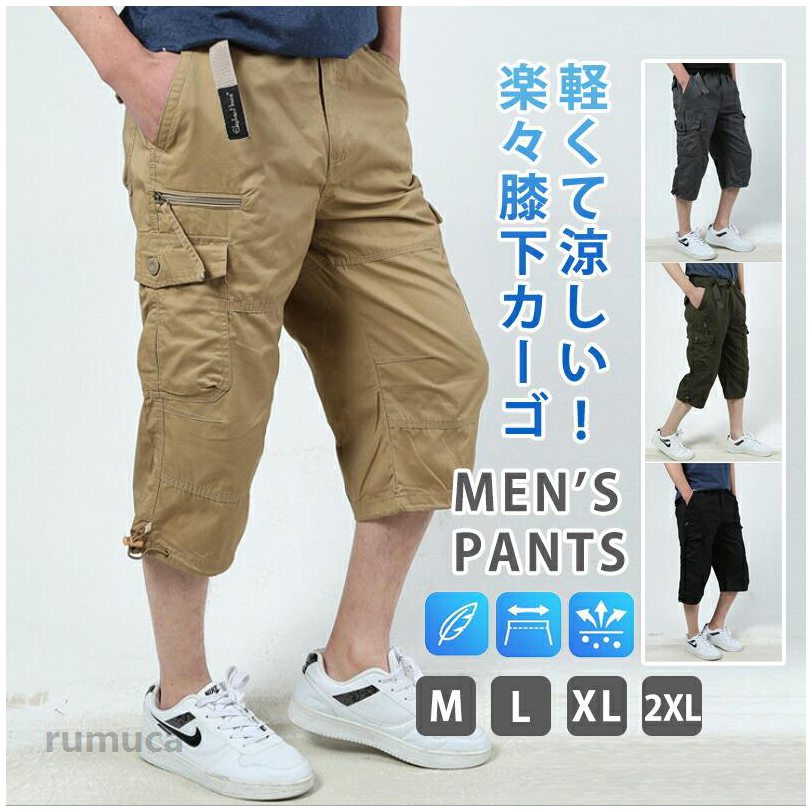 パンツ メンズ 7分丈 ストレッチ カーゴパンツ ズボン 夏用 七分丈 クロップドパンツ 大きいサイズ 短パン ショーパン ミリタリー キングサイズ 軽量 M L LL XL 全8色 ジェネレス 父の日 父の日ギフト スーパー スーパー