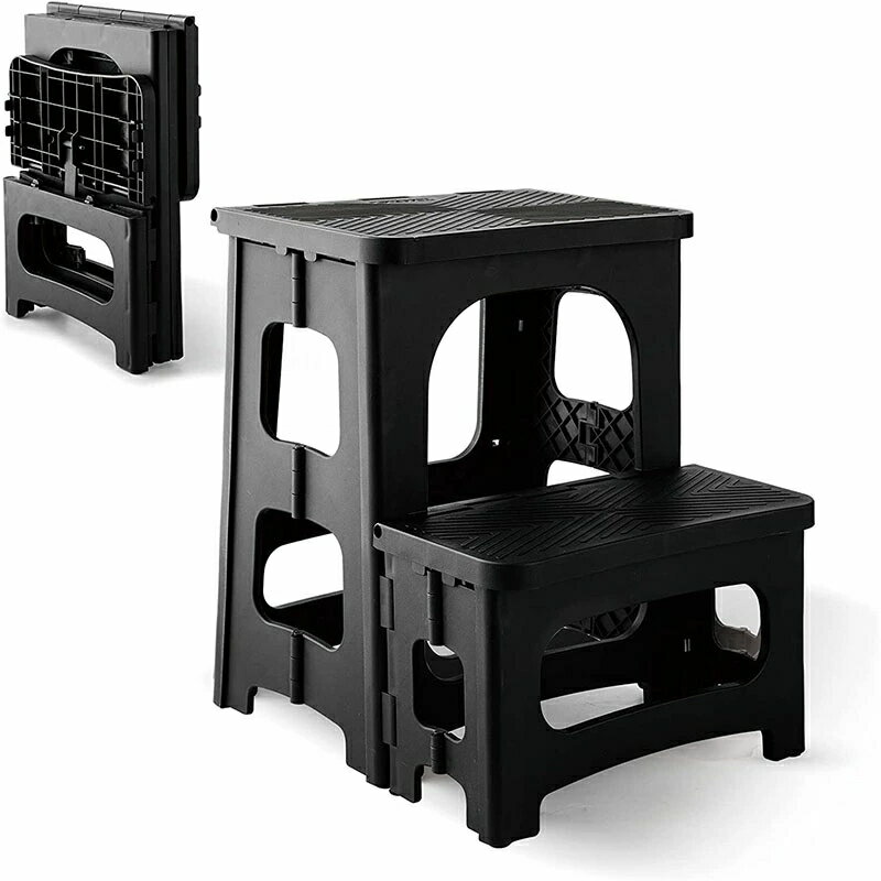 踏み台 折りたたみ式 ステップ台 2段 フォールディング アウトドア 室内 屋外用 折りたたみチェア 隙間収納 持ち運びしやすい 安定 玄関台 脚立 椅子 洗車 軽量 踏み台 (ブラック)