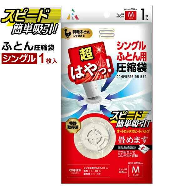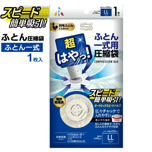 圧縮袋 布団用 超はやっ! バルブ式 圧縮袋 大きなふとん用 L 1枚入 SP-1002 | ふとん 圧縮 収納袋 エアッシュ対応 吸引 ダブル セミダブル シングル オートロックバルブ 130×90cm