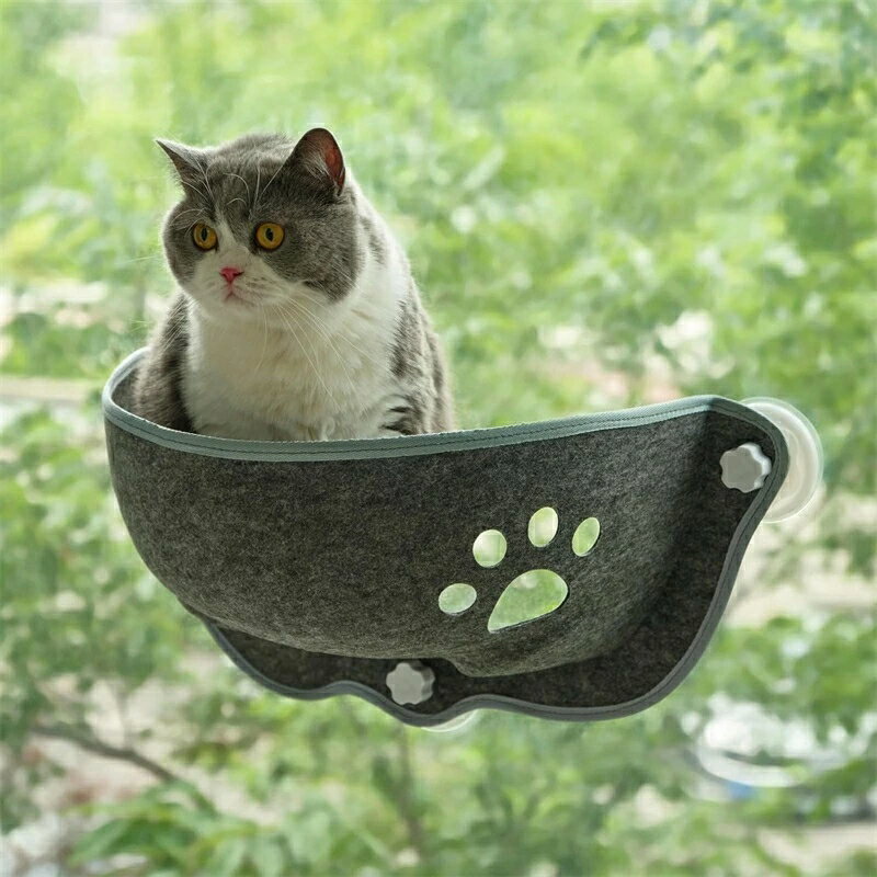 猫窓用ハンモック 猫 ベッド 吸盤式 猫 ハンモック 窓掛け 猫ベッド 耐荷重 取り付け簡単 取り外し可能 キャット日光浴 睡眠 運動 休憩 四季兼用 通気性 グレー