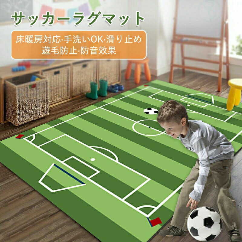 サッカーラグマット ラグ カーペット インテリア デザイン フットボール プレゼント 誕生日 床暖房対応 手洗い対応 滑り止め 防音 子供 親子適性 女の子 男の子 子供 誕生日 誕生日プレゼント 子供の日