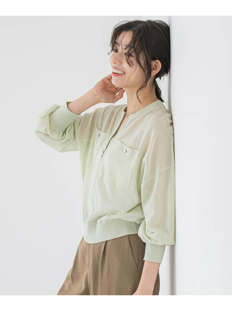 【SALE/50%OFF】シアーZIPブルゾン≪手洗い可能≫ Droite lautreamont ドロワット・ロートレアモン トップス ニット グリーン ホワイト【RBA_E】【送料無料】[Rakuten Fashion]