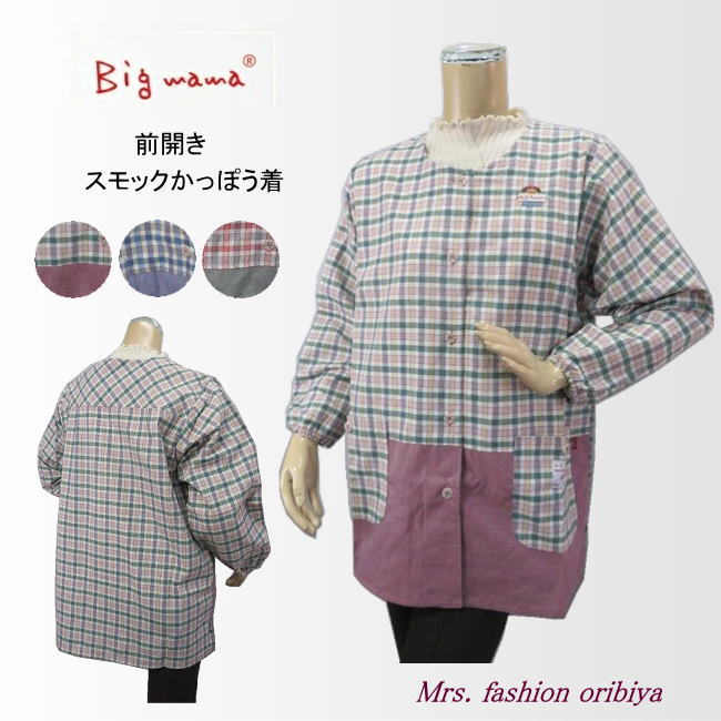 Big mama(ビッグママ) 裏起毛ニット割烹着 水玉柄 後ろ開き 冬用 BM4