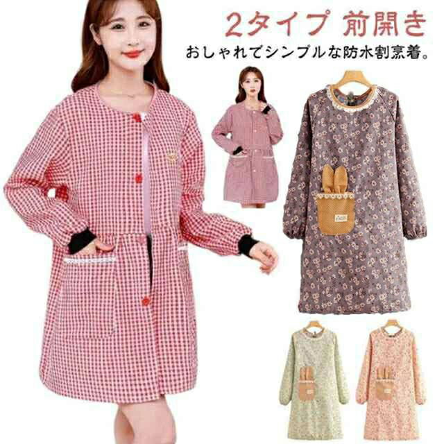 かわいい チェック柄 割烹着 袖付き 2タイプ かっぽう着 ポケット付き 割烹着 前開きタイプ 大人用 おしゃれ 花柄 レディース 長袖 エプロン スモック オシャレ ルームウェア 保育士 2タイプ 給食 学校 家事 かっぽうぎ 介護士 おしゃれ チュニック