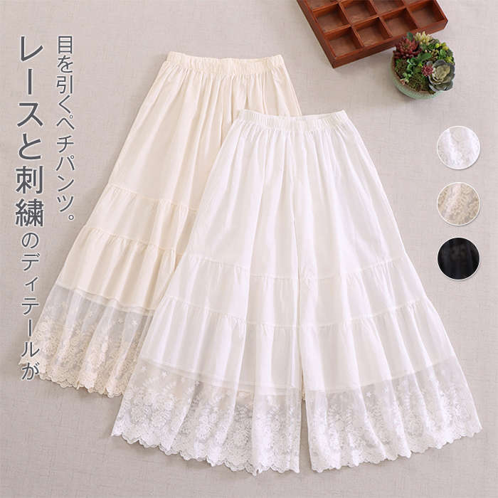 ゆっ 刺繍 レイヤード 重ね着 透け防止 夏 春 ワイド ロング レース パンツ インナー ペチコート 楽天2位入賞!ペチパンツ