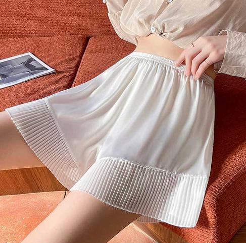ペチパンツ ペチコート フレア インナー パンツ ショーツ 薄手 響きにくい かわいい パジャマ 部屋着 透け 防止 透け防止 ルームウェア インナーパンツ レース 裾レースペチコートルームウェア ウエストゴム 透け防止 重ね着 裾プリーツ きれいめ 体型カバー