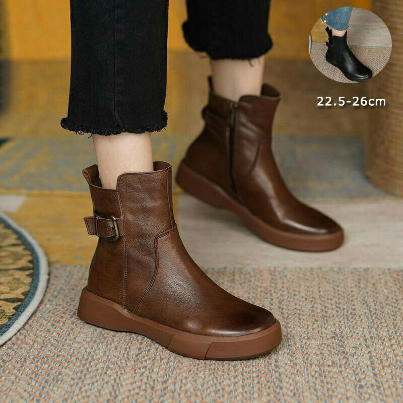 ショート ブーツ レディース レースアップ ブーツ シューズ 黒 ショート サイドジップ ブーティ編み上げブーツ 厚底 ブーツ 防寒 3Eワークブーツ 撥水 軽量 幅広 歩きやすい 足が痛くならない 後ろファスナー 本革 秋冬ブーツ ショートブーツ