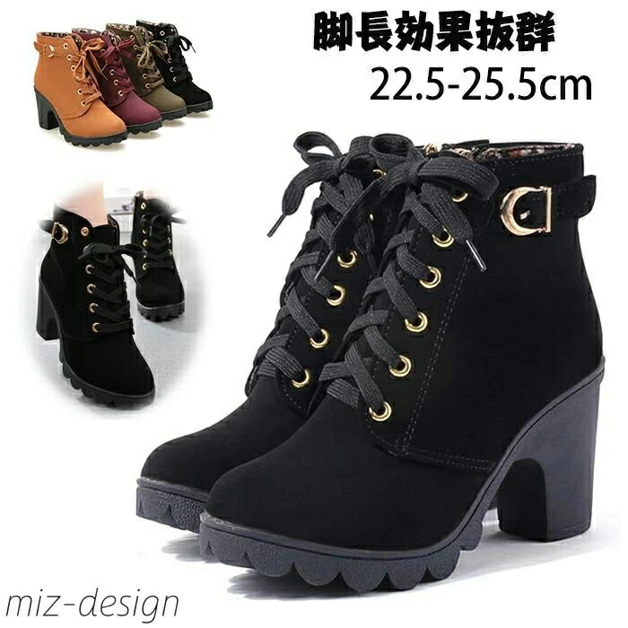 ブーティー 歩きやすい レースアップ ハイヒール ハイカット レディース 厚底美脚効果 ブーツ サイドジップ ブーティショート