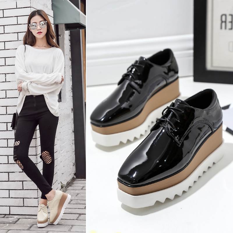 【P2倍&クーポン有】厚底 レースアップ レディース シューズ ボリューム 7cm フラット ぺたんこ ウッドソール 美脚 脚長 かわいい 大人可愛い シンプル カジュアル おしゃれ かっこいい レトロ エレガント スポーティー ボーイッシュ クラシック マニ