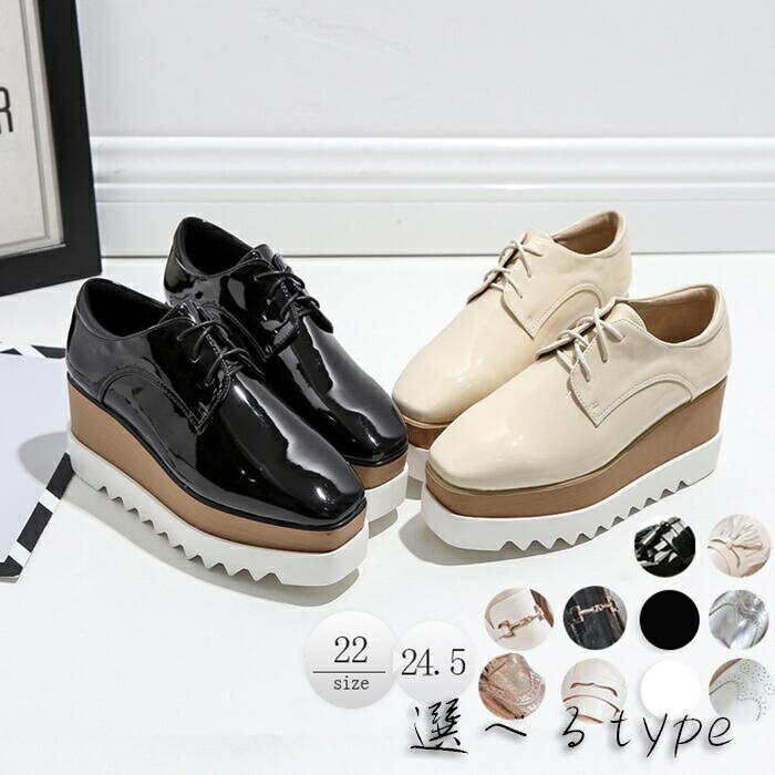 スニーカー 歩きやすい 厚底ウェッジ シューズ 厚底 スニーカー レースアップ 厚底 オックスフォード ショートブーツ ウェッジソール ウッド スムース レザー ブーツ ショート レディース ホワイト ブラック エナメル革