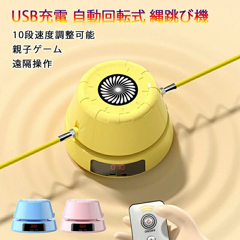 縄跳び機 縄跳び 速度調整可能 縄跳びマシン 自動回転 USB充電式 スマート リモコン操作 スピード調整 縄あり なわとび 小学生 子供用 大人用 多人数対応 トレーニング 運動神経 ダイエット 子ども 電動縄跳び リモコン付き 3色