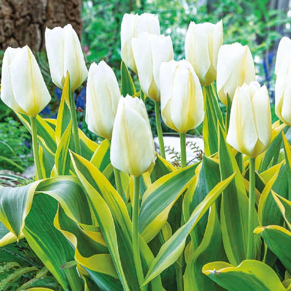 チューリップ:ピューリシマブロンド1球植え芽出し3号深ポット(斑入葉)