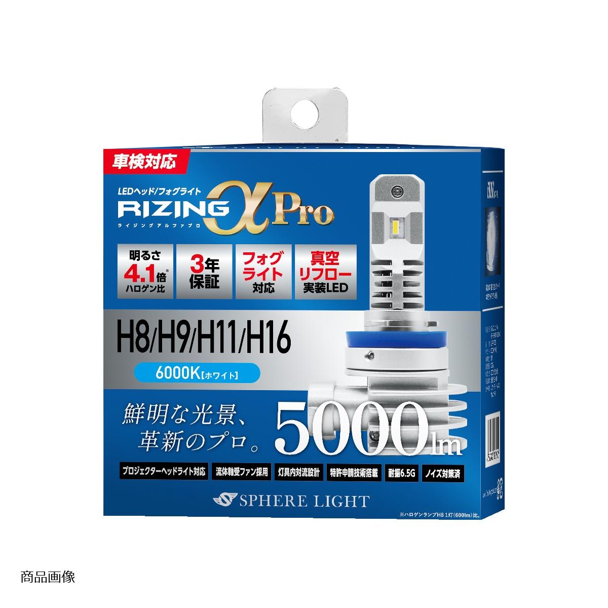 スフィアライト LEDヘッド/フォグライト RIZINGアルファPro H8/9/11/16 6000k SLRPH11060