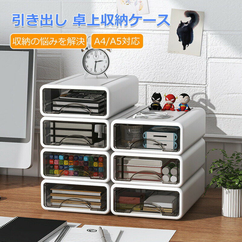 引き出し 卓上収納ケース 収納ボックス プラスチック A4/A5対応 横 小物 ホワイト 透明 滑り止め 大容量 文房具収納 書類ケース 化粧品 事務用品 文書 衣類収納 組み