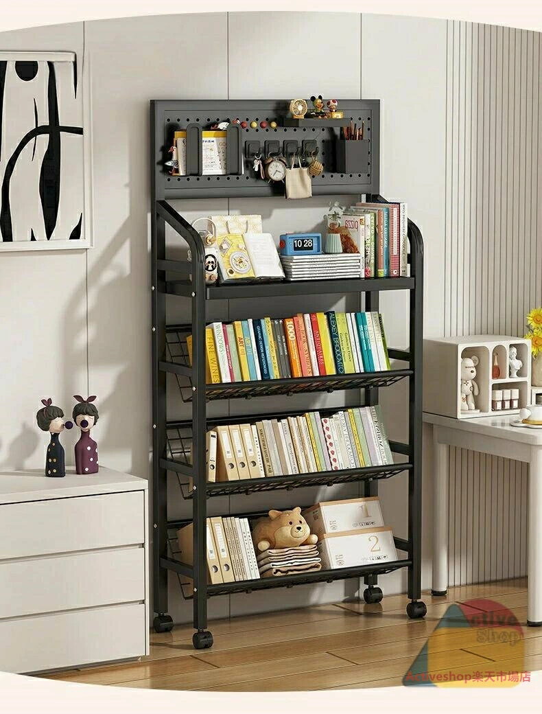 収納棚 ブックシェルフ デスクサイド本棚 キャスター付き スリム ファイルワゴン 本立て 大容量 教科書 漫画 雑誌収納 学校/オフィス用