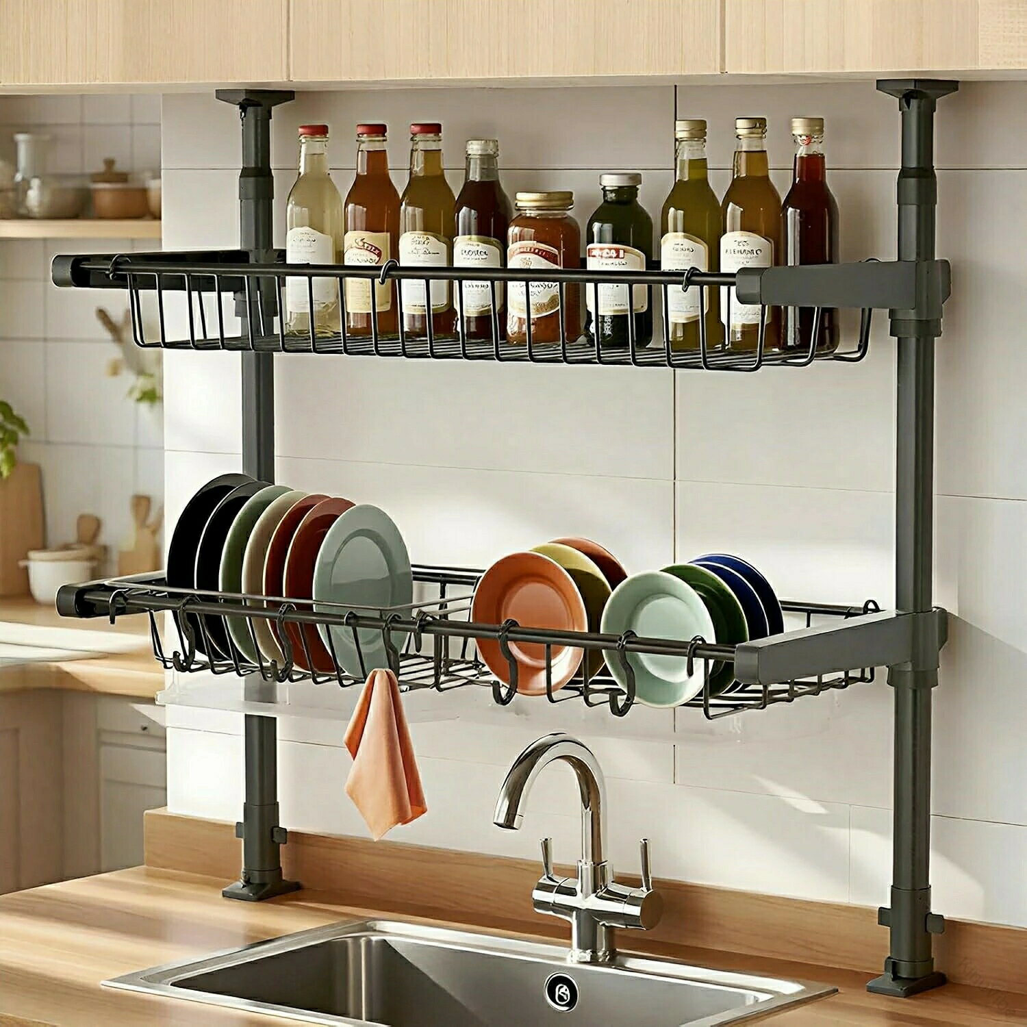省スペース 錆びない キッチン収納 シンク上 水切りかご 大容量 食器収 食器棚 スッキリラック コンパクト 抗菌 スリム