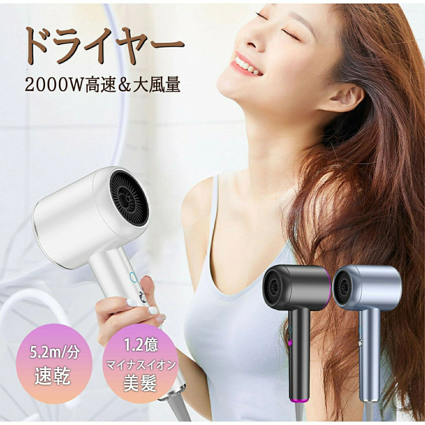 ドライヤー 速乾 大風量 冷熱風 高速ドライヤー 4段階調節可能 おすすめ 高級 ヘアドライヤー 2億マイナスイオン 高速 2000W 温度調整 超軽量 美髪 静音 過熱保護 髪質改善 恒温保護 過熱防止 髪に優