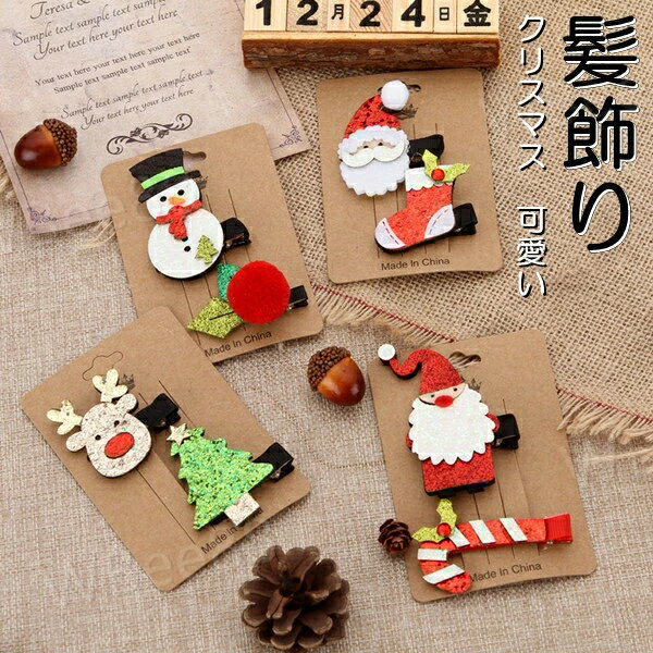 クリスマス 髪飾り 4点セット ヘアピン 可愛い かわいい ヘアアクセサリー ヘアアクセ アクセサリー アクセ プレゼント ギフト 子供 小物入れ ツリー 飾り おしゃれ 雑貨 イベント パーティー クリスマスグッズ