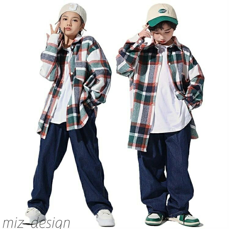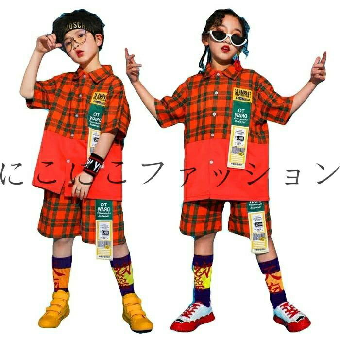 キッズ ダンス 衣装 ヒップホップ セットアップ チェック柄 ダンス衣装 ギンガムチェック かっこいい 男の子 女の子 キッズダンス 演出 舞台 トップス ダンス hiphop