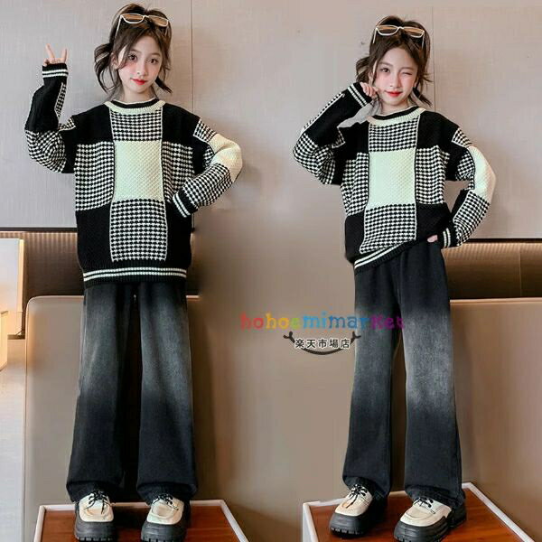 韓国子供服 女の子 セットアップ おしゃれ 秋冬 新品 上下セット キッズ ニット セーター デニムパンツ レジャー 秋着 冬着 通学着 子ども服 子ども 暖かい セーター ファッション デニムワイドパンツ 110 120 130 140 150 160