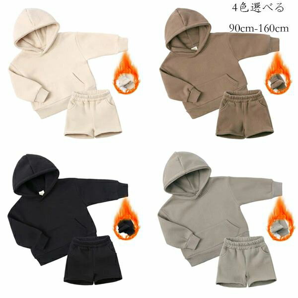 子供服 冬服 セットアップ 男女兼用 防寒抜群 裏起毛仕様 ジャージ 上下セット キッズ パーカー+ショートパンツ 2点セット 女の子 男の子 通園 通学 運動着 冬着 子供用 スポーツウェア お出かけ ページュ ブラウン ブラック カーキ 90 100 110 120 130 140 150 160