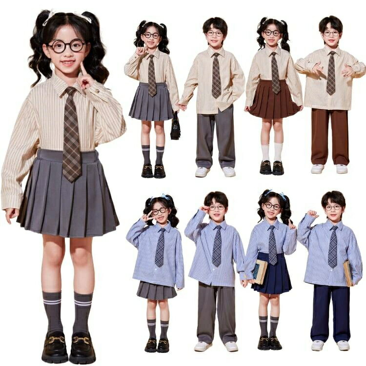 キッズ ダンス 衣装 卒業式 女の子 男の子 JK セットアップ 学生 制服 ダンス衣装 ヒップホップ 中小生 幼稚園 韓国 無地 チェック柄ネクタイ シャツ スカート パンツ HIPHOP 学園制服 学園 合唱団 発表会 カーキ グレー ブラウン ブルー ネイビー