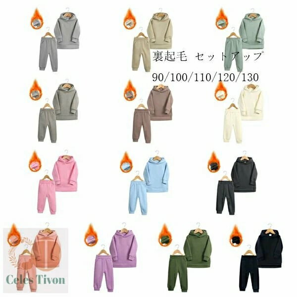 子供服 裏起毛 セットアップ 13色選べる ユニセックス 防寒 あたたかい ジャージ 無地 2点セット キッズ 上下セット 女の子 男の子 フード付き パーカー+パンツ カジュアル スポーツウェア 冬着 通園着 通学着 お出かけ 子ども服 姉妹 兄弟 双子 90 100 110 120 130