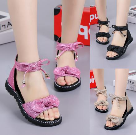 子供靴 サンダル 女の子 キラキラ アンクルストラップ リボン 夏 キッズ ジュニア 子供サンダル 可愛い 子供用 姫系 女児 子ども かわいい おしゃれ 可愛い 卒園式/入学式/パーティ ブラック ピンク ゴールド