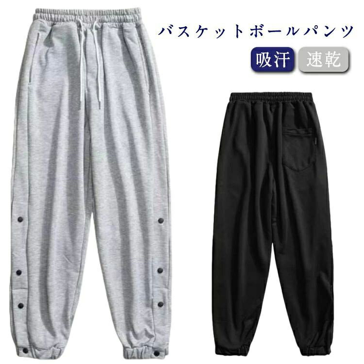 ジャージパンツ 裾ボタン スナップボタン 長ズボン 吸汗 速乾 ドライ バスケパンツ バスケットボール バスパン サイドライン 練