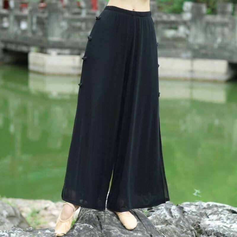 ストレート ロングパンツ ダンスパンツ ワイドパンツ チャイナボタン ダンス ワイドパンツ レディース ガウチョパンツ ハイウエスト ボトムス 春夏 シフォン 大人 シフォン