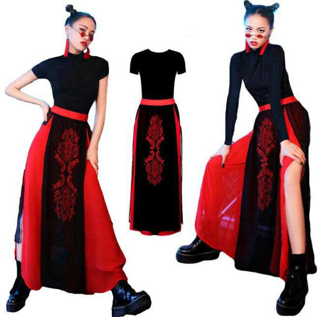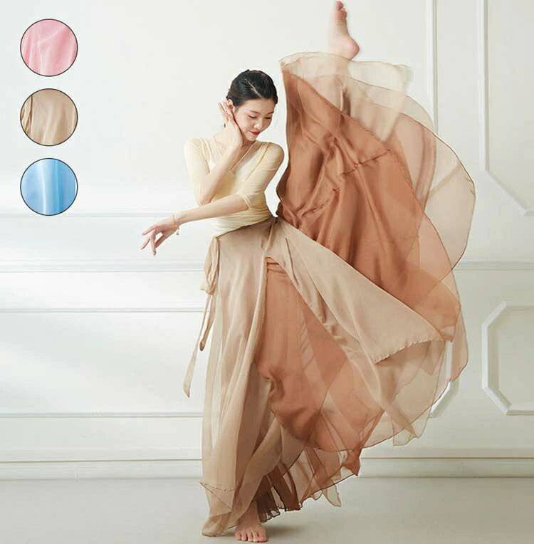 ダンススカート ダンス 広がるスカート レッスン着 エレガント 広がる720° 配色 衣装 飄逸 90cm バイカラー 練習着 古典ダンス 民族ダンス 85cm 8つスリット 巻きスカート 大きい裾 95cm ダンス衣装 社交ダンス 2トーン 100cm ロング丈80cm 中国古典舞踊ダンス 二枚シフォン