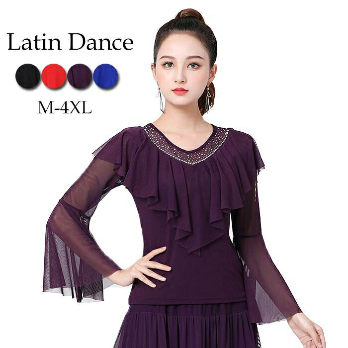 社交ダンス トップス 可愛い フレア袖 ダンストップス 社交ダンス衣装 ラテンダンス レッスン着 モダンダンス ラテンダンス タンゴ ワルツ トップス 初心者 入門ステップ 上級者 競技会 練習着 舞台衣装 ステージ衣装 演出服 ダンス発表会 パーティー 団体 演出服 M-4XL