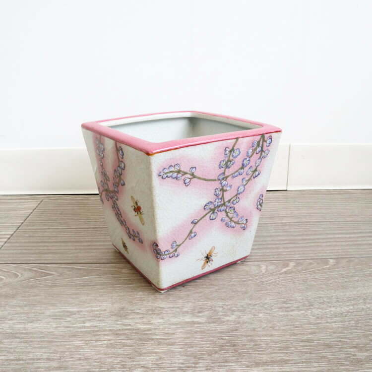 送料無料 繊細なお花模様 プランター 磁器 花瓶 鉢カバー プランターボックス アンティーク レトロ おしゃれ 小物入れ 玄関 リビング 鍵入れ