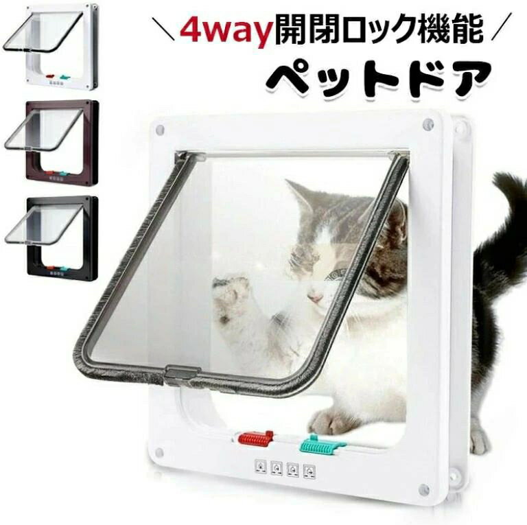 【6%OFFクーポン配布中!】ペットドア キャットドア 猫ドア ねこ 犬 引き戸 後付け DIY 取り付け 冷暖房対策 室内 壁 扉 薄型 4方向ロック付き 通り抜け ペット 出入り口 ペット用ドア 小型犬 壁用 引き戸 キャット用ドア 猫用 犬用 ホワイト ブラウン ブラック 送料無料