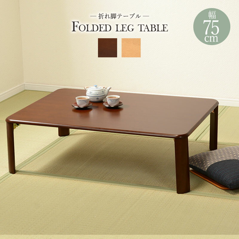 折れ脚テーブル 幅75cm 木製 コンパクト 折りたたみテーブル 折り畳み 和室 ちゃぶ台 シンプル ローテーブル センターテーブル コーヒーテーブル カフェテーブル 机 つくえ 長方形 省スペース モダン ナチュラル ブラウン 茶 VT-7922-75NA 送料無料